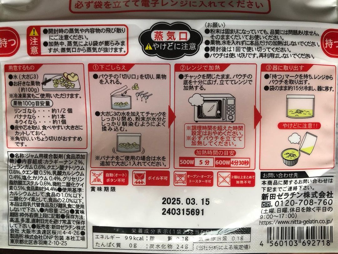 ・ ☆☆〜☆☆〜☆☆〜☆☆〜☆☆〜☆☆ 新田ゼラチン のせる生ジャムミックス 内容量 25g ☆☆〜☆☆〜☆☆〜☆☆〜☆☆〜☆☆ . 今日は,レンジでチンの簡単&手軽に! の 生ジャムを作ってみました。 のせる生ジャムミックスは袋の中に カットした果物と水を加えて混ぜ合わせ, 袋のままレンジの中へ。 これだけで美味しい生ジャムができちゃうのです‼️ 果肉がゴロゴロしてて,歯応えを感じられる ジャムが出来ます。 パンにのせても合いますね。 パンケーキやヨーグルトにもいいですね♪♪♪ ジャムが手軽に短時間で作れるキットは便利ですね。 ・ #PR #新田ゼラチン #のせる生ジャムミックス #ジャムが楽しめる手作りキット #monipla #nittagelatin_fan