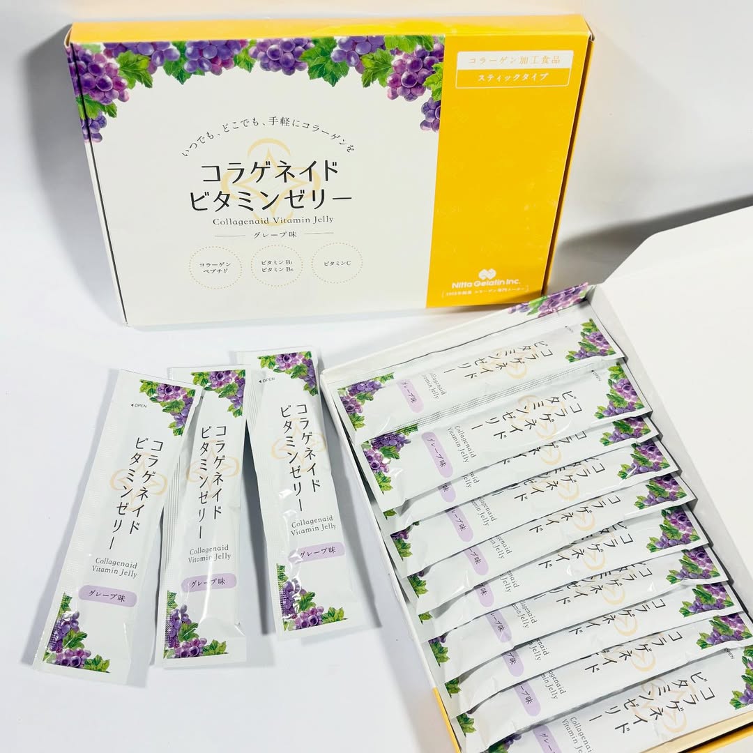 新田ゼラチンダイレクト「コラゲネイドビタミンゼリー」 をお試ししました! スティックタイプのゼリーで手軽にコラーゲン摂取♪ コラーゲンペプチド、だけでなく、元気の源のビタミンB1、B6、Cも一緒に補給できます。 コラーゲンは肌の潤いを保つことで知られていますが、丈夫な骨や関節・筋肉の維持にも関わる大事なタンパク質📝年齢とともに気になる成分ですので、意識して摂取したいと思っていたところでした♪ グレープ味のゼリーでほんのり甘く美味しい😋おやつを食べてる感覚で手軽に食べられます!スティックパウチを押してツルンッとそのまま口に入れられるので、朝ごはん後やお出かけ前にサッと補給しています! かさばらないので、カバンにいれて会社や旅行先に持って行って手軽に食べられるのも便利でした! そのまま食べるだけでなく、混ぜてもOKなので、ヨーグルトに混ぜてみたり、炭酸やジュースに入れてゼリー入りドリンクにしたりアレンジも楽しめます🙆♀️ コラーゲンだけでなくビタミンも含まれているので、食事だけでは不足しがちな部分をサポートできるのもありがたいです。 少し前に、血液検査での貧血指導で、貧血予防には鉄だけでなくビタミンも重要と言われていたのですが、毎日コラゲネイドゼリーをツルッと食べてると以前より疲れにくくなった気がしています!栄養補給、大事ですね😆 美容や健康のために気軽に続けられるゼリータイプ。とても気に入っています👌 #PR #新田ゼラチン #コラゲネイドビタミンゼリー #おやつ代わりにコラーゲン補給 #monipla #nittagelatin_fan