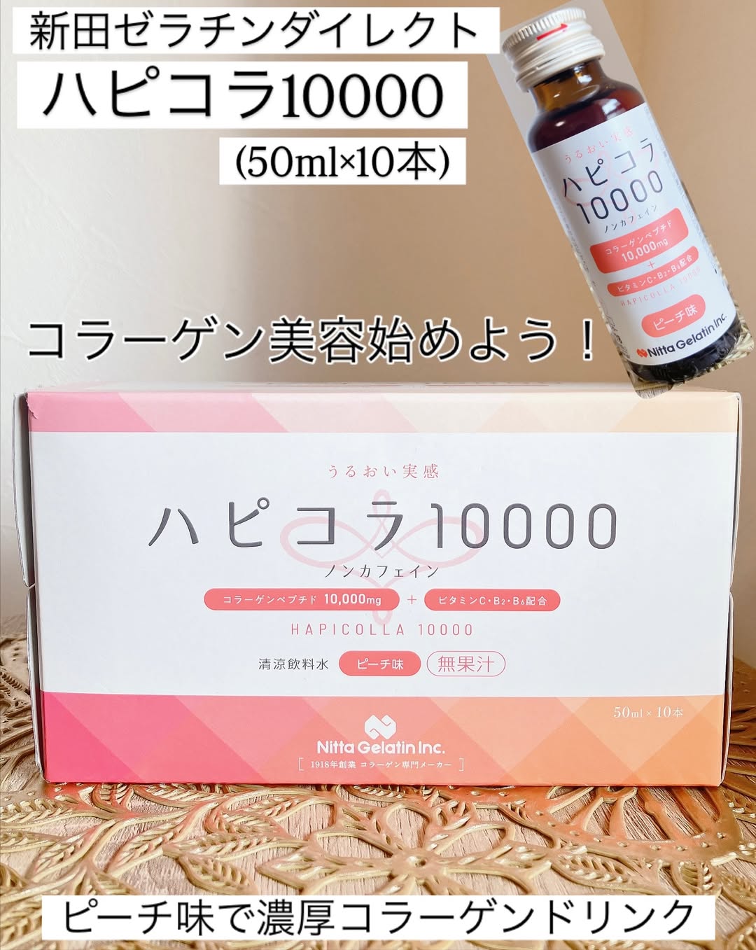 ♡いいね👍フォローお願いします♡ 新田ゼラチンダイレクト ハピコラ10000 (50ml×10本) @nittagelatin_proshop 様から商品をご提供 いただきました♡ありがとうございます🙇♀️💕 「コラーゲン美容始めてみよう!」 試してみて💁♀️↓ とろんと👄の中で感じるほど濃厚でほどよい 酸味とピーチ🍑味で甘くてとても美味しい♡ ビタミン!って味も気にならないほど美味し く感じたよ☺️💕コラーゲンが体の内側から アプローチしてくれるよ! 50mlの瓶が10本入りで、1日1本を目安によ く冷やして、軽く振ってから飲むよ! 寝る前に飲むのがおすすめだよ💁♀️ 〈ノンカフェイン〉だから夜でも気にすること なく飲むことができるよ! コラーゲンペプチド「Wellnex®」10,000mg にビタミンC、B2、B6を配合しているよ✨ ※「Wellnex®」は新田ゼラチンが独自技術で 製造したコラーゲンペプチド 濃厚コラーゲンドリンクで、とても飲みやす くて、ほどよい酸味とピーチ🍑の甘い味が 美味しくて毎日続けやすいよ〜♡ 飲み続けるとお肌の調子が良くなった気がし て気分も上がってお気に入りに♡ コラーゲンの力で「あなたらしい美しさ」を サポート✨ぜひお試しを〜💁♀️♡ #PR #新田ゼラチン #ハピコラ10000 #ピーチ味の濃厚コラーゲンドリンク #monipla #nittagelatin_fan