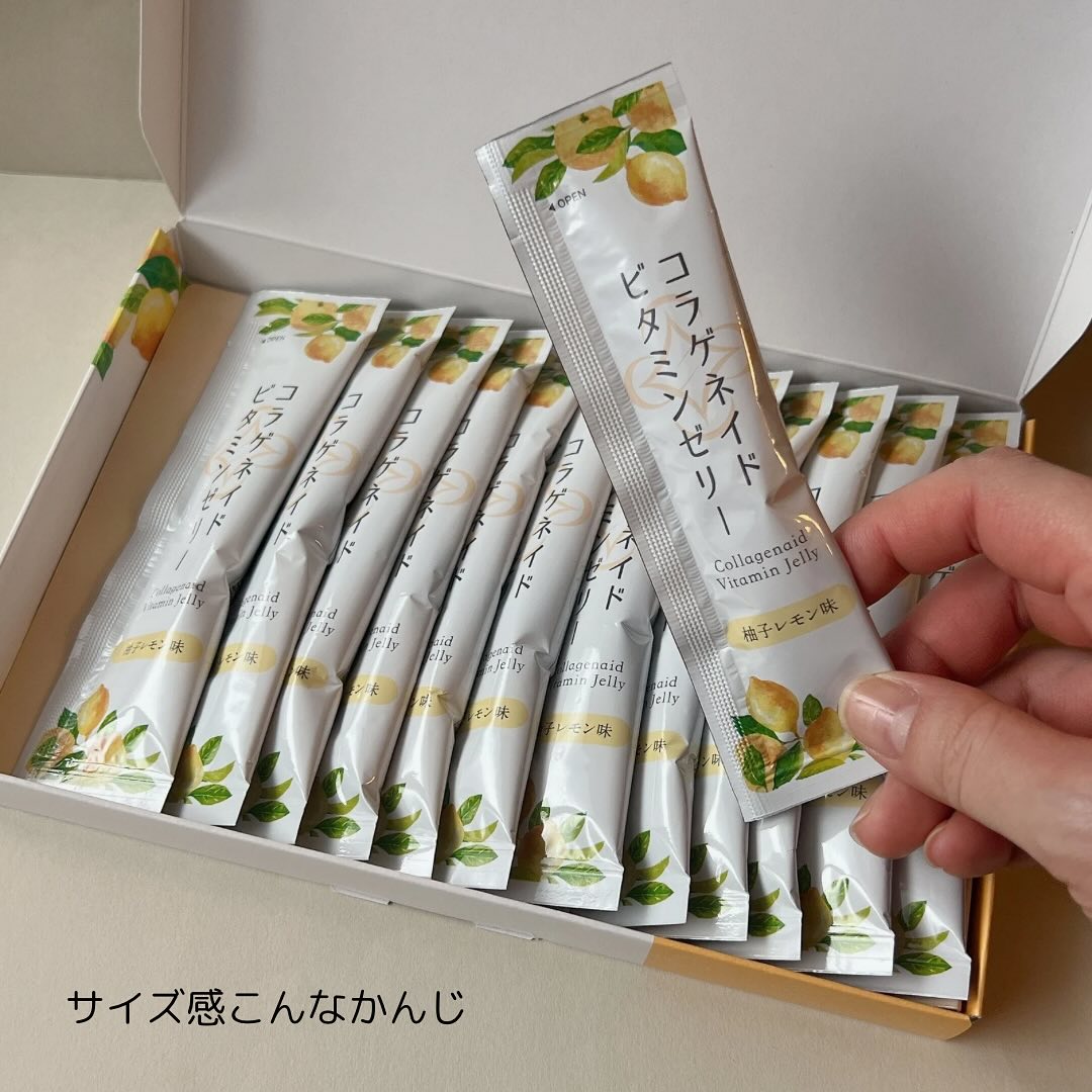 1本でコラーゲンペプチド2,500mgが摂れる美味しく、食感にこだわったコラーゲンゼリーです。 コラーゲンペプチドだけでなく、ビタミンB1、B6、Cなどの成分も一緒に摂れる柚子レモン味のスティックタイプのゼリー。 手軽においしく、おやつ代わりにコラーゲン補給したい方におすすめです。