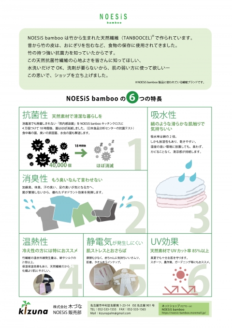 NOESiS Bambooファンサイトは、㈱木づなが運営するファンサイトです。「竹から生まれた天然繊維」の魅力を知っていただきたく、多くの製品をご用意して皆様のご参加をお待ちしています。