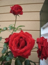 ウルメールミュンスター(ウルメールムーンスター) ドイツ コルデス LCl 繰り返し咲き 濃赤 大輪 微香 今年の台風で横に写ってるトレリスが飛ばされて 縛っていたウルメールミュンスターは 根っこをあらわにして 横に倒れてしまってましたが こんなに元気に♡元通り 慌てて植えもどした… 2011/12/05