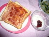 最近、休日の朝に良く手作りするのが 「フレンチトースト」です 卵液がパンにたっぷりシミシミしているのが大好きなので 丸1日パンを卵液に浸さないと好みのフレンチトーストにならないので 前日から用意をしないといけないので 食べたくなったら直ぐに出来ないのが難点だけど 今日は前日からバッチリ用意をしたので… 2011/04/03