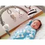 5つのおもちゃを13ヶ所のポイントに自由にセットして楽しむことができるプレイマット。アーチを取り外せばキルティングマットだけでも使用でき、おもちゃはベビーカーなどに取り付けることもできます。