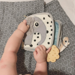 モニターで頂いたダンバイディアさんの布絵本☺️ 最近カバさんやクッキーも掴めるようになってきました😊🍪 クッキーは歯固めになっているので口に入れても安心🐰 鏡を自分で持ってのぞき込んだり興味深々です🙂 布絵本なので当たったりしても痛くないのも嬉しい☺️ #donebydeer_japan #ダンバイディア #nookswebshop #monipla #nooks_fan 2021/08/12