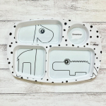 各仕切りにデザインされたイラストが赤ちゃんの食事を楽しく演出するコンパートメントプレート。適度な深さがあるので柔らかい食事もスプーンやフォークですくいやすく、幼児期にも使いやすいサイズです。