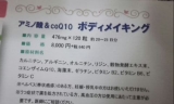 ■原材料:カルニチン、アルギニン、オルニチン、リジン、穀物発酵エキス末、コエンザイムQ10、海藻末、ゼラチン、ビタミンB2、ビタミンB6、ビタミンC