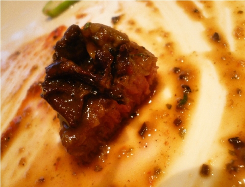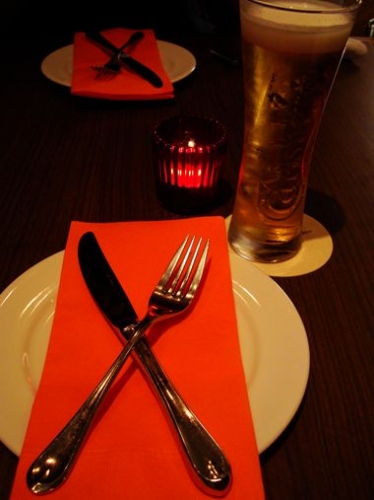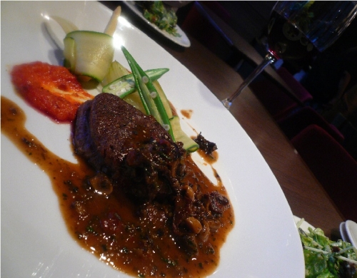 落ち着いた雰囲気の店内、道沿いに並んだ席で外を眺めながらもよし、奥に入ると更にゆっくり楽しむことができたりと、ニーズに応じて使い分けられるお店の席配置がまずいいなと思いました 試食の「牛フィレ肉のソテー 仏産キノコのソースシャスール トリュフの香り」の前には、まずはビール、豚肉のパテを注文… 2010/07/18