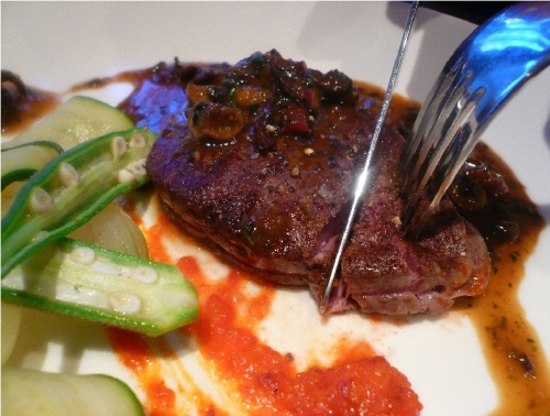『牛フィレ肉のソテー 仏産キノコのソースシャスール トリュフの香り』をご試食いただきます。