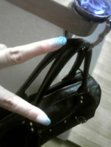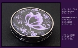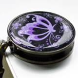 他店ではあまり見かけない珍しいブラックのバッグハンガー本体に、優雅な紫色のバタフライが描かれた素敵なデザインです。