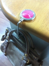 すぐにかけることができる使いやすいフックタイプのバッグハンガーです。