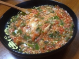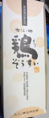 久しぶりにお届け物が届いたたいそうな箱にのしまで付いていたかねてメールをいただいていた鳥雑炊のもとだった6個も入っているこれだと、そのままお湯をかけていただけそうだが、何かレシピを考えてくださいとのことだどんぶりにしてはどうかなと思っている或いはご飯の代わりにうどんを使ってみてはどうかと… 2013/03/18