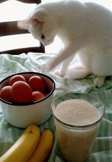 パン工房〈栗と胡麻のカンパーニュエッグスムージー&にゃ♪〉昨日より陽射しがあって幾分過ごしやすそう部屋の中から見る青空は気持ちが良い♪暖房とファンヒーター、炬燵、すべてふる稼働の部屋でエッグスムージー♪しかもオーブンは220度!あったかい〜今がチャンスとばかりにごくごく(^^身体が喜んでる… 2016/01/22