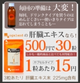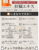 | 主要原料 | (1カプセルあたり):豚肝臓エキス末 75mg / ウコンエキス末 22mg / マリアアザミエキス末 3mg |