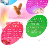 カルシウム、カリウムなどのミネラル分やビタミンC、アントシアニンを豊富に含んだ植物で女性特有のトラブルにもうれしいクランベリーパウダーを配合しました。
