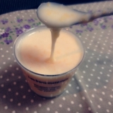 食べる前に、ヨーグルトから次回作る量の10%(1リットルで大さじ7杯位)を取りおきます。