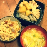 体調戻った途端に、食欲も旺盛なトマトです美味しいもの食べたいなと思い、でも、外は寒いお買い物行きたくないや…と、冷蔵庫の中身のを確認なんとか、買い物行かずお夕食をと、知恵をしぼると同時に、家捜し!『炊き込みご飯と、大根と豚肉とこんにゃくの煮物、お味噌汁』と、メニューは決まりだけど、今ひとつパ… 2012/12/21