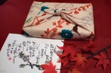 風呂敷は、デザイナー古家悦子がてがけるブランド、echine(エチノ)より、ゲストが後で使いやすい絵柄を選びました。(綿100%です。)