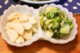 だし屋大友のゆずと昆布の浅漬の素で、野菜と乾物を使った一品おかず♪ スライサーでじゃがいもを千切りにして20秒ほどサッと茹で、人参とピーマンと、チンしたきのこ(えのきと株取りなめこ)と合わせて、ゆずと昆布の浅漬の素をふりかけて混ぜて、おいたもの 野菜がおいしい♪ きのこのぬめりがいい モリ… 2013/10/29