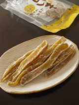 「おいもや」ちゃんのスイーツを、頂きました 干し芋、芋ようかん、芋茶巾 食欲の秋芋は今が旬 しかも、我が県、静岡産とくれば、おいしくない訳がない もりもり食べて、ゆうかは、干し芋が気に入った様子 硬すぎず、ぐにゃぐにゃでもなく、絶妙 「もっと食べたい」っていってる けど… 2011/10/21