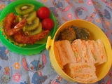 今日の幼稚園お弁当 サンドイッチはまってマス∵(´艸`)∵ 今日は野菜たっぷり入れたょ ブロッコリーはいつもそのままぢゃつまんないので 今日はクリーム煮 エビフライはお弁当用に作り置きして 冷凍庫にストックしてあったやつ で、小さいフライパンで2コだ… 2009/11/25