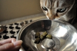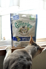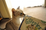 歯垢、歯石、口臭ケアになるおやつ「グリニーズキャット」食べてくれるかな?封を切ってみると…おいしそうな匂いがするのか、大興奮!中身はモスグリーンで大きめの粒いつも食べているカリカリ(アイムス)の2倍ほどの大きさですシーバと同じくらいの大きさかも小さ 2011/11/06