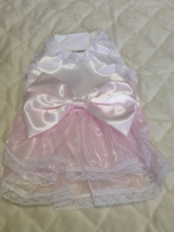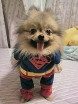 お洋服はスーパーマンだけど女の子です!ウエディングドレス絶対似合うと思う!よろしくお願いします!【ウェディングドレス】リボンがかわいい犬用パーティドレスを3名様へ 2012/06/22