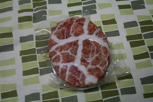 届いた瞬間その見た目にびっくりー! わあすごいきれいなハンバーグだあ♪って このハンバーグは近江牛の小間を包丁でたたき、網脂で丁寧に包み込んだものなんだって たしかに網みたいなのに入ってて最初これとってから焼くのかと思いました(笑) 油ひかないで焼いてもよかったくらい… 2013/06/18