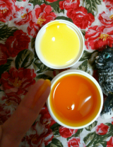 カレーのスパイスでもあるターメリック(ウコン)の黄色色素でポリフェノールの一種クルクミン (curcumin) が主原料です。