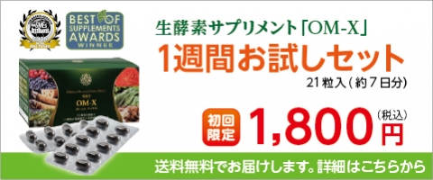 生酵素サプリメント『OM-X』を販売している、株式会社オーエム・エックスです。