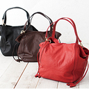 牛革ナチュラルカラーの使いやすいユニセックスバッグ。