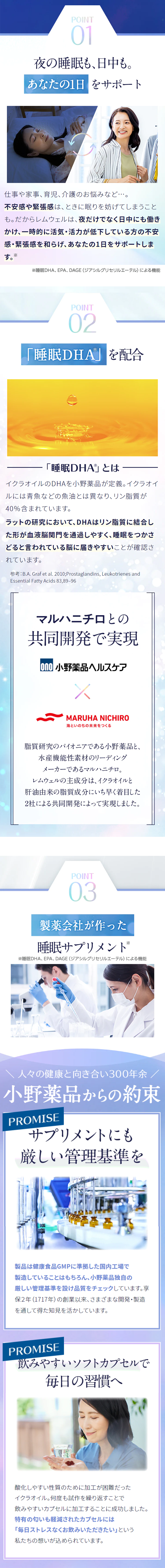 ※1 睡眠DHA、EPA、DAGE(ジアシルグリセリルエーテル)による機能
