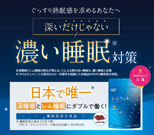 レムウェルは2つの眠り両方にアプローチ。深睡眠とレム睡眠にダブルで働く。 夜の睡眠も、日中も。あなたの一日をサポートします。
