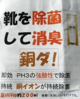 シュッ 靴を除菌して消臭『銅ダ』 この時期は特に汗や湿気で足のにおいや靴のにおいが気になります それもそのはず、足の裏には汗腺が集中しているので、普通に生活していても、両足でコップ1杯ほどの汗をかくんですって この汗を放置してしまうと足や靴についている雑菌が汚れを分解して足のに… 2011/08/29