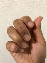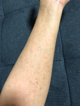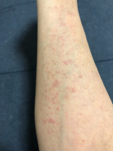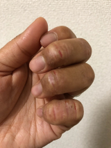 掻きむしってかさぶたになっている・ ・ ・