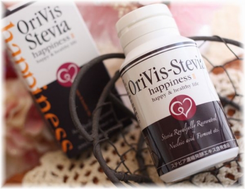 「オリヴィスステビア-ハピネス」は、独自の研究を基に開発されたステビア発酵エキスをベースに、厳選された植物原料を潤沢にブレンドしたタブレットタイプの健康補助食品です。