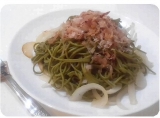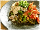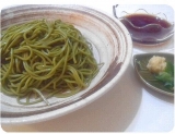おさだ苑本店さんから届いた「遠州森の抹茶そば」おさだ苑さんの森の茶園で育った上質で香り高い抹茶をふんだんに使い丹精込めて打ち上げられた抹茶そばです緑鮮やかです開けるとほわっとお茶の香4分ほどちょっと温かい日だったので、ゆがいて水にさらして冷しゃぶとねぎ、キムチをのせて、めんつゆでいただ… 2013/11/15