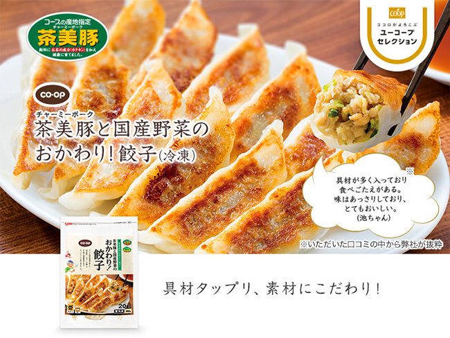 肉はコープの産地指定「茶美豚」と「はぐくみ鶏」を