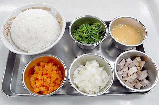 「炊飯」してから、「玉ねぎ・ねぎ」のみ混合して、