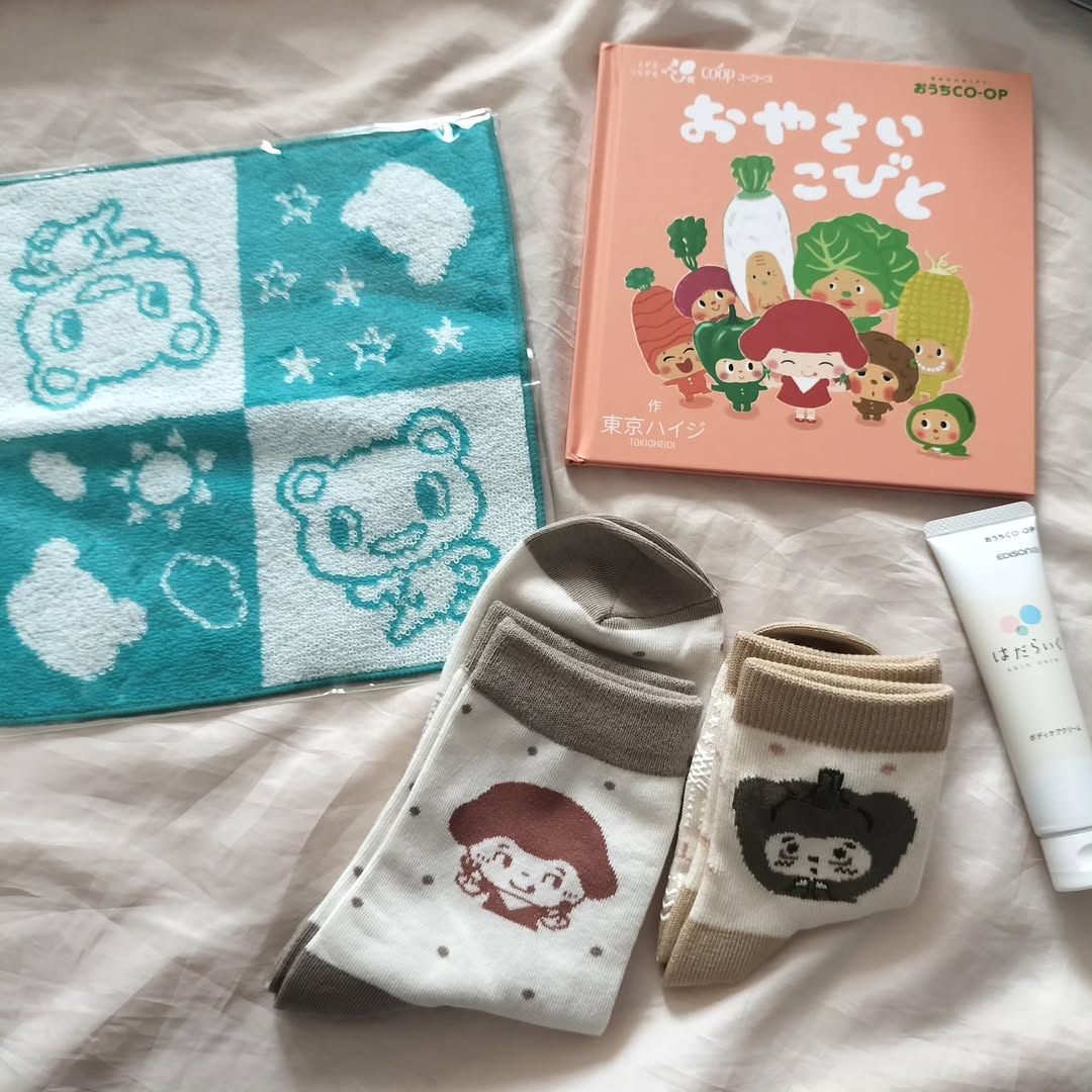 おうちCO-OP様 おうちCO-OP ご出産お祝い ✨スマイルボックス✨ おうちCO-OP ご出産お祝いって知ってますか☺ 実はこちら "神奈川県・静岡県・山梨県" に お住まいの妊娠中~1歳未満のお子さんのいるご家族様に 無料でお届けしているものなのだとか💓 今回お試しさせて頂きました♫ 内容が豪華です✨ ・絵本「おやさいこびと」 ・おやさいこびと 親子ペアソックス (ベビー用9~14cm 大人用:23~25cm)←女性サイズ☆ ・ボディケアクリーム 30g ・コーすけハンドタオル こんなにたくさん良いのですかという内容です💓 絵本もオリジナルで絵が可愛いし それに合わせた靴下も素敵です♫ お出かけにはタオルは必需品になるから息子大好きなコーすけは嬉しい✨ ボディケアもお試しできるし 頑張るママさんの強い味方です☺ ぜひおうちコープをチェックしてみてください♫ #PR #ユーコープ #おうちコープ #おうちCOOP #monipla #ouchicoop_fan