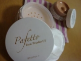 夏場に頼もしいUV効果のあるフェイスパウダーをお試しさせていただきました パフェット フェイスパウダーUV SPF25++ オークルタイプ 右側がそうです 左は、化粧水からファンデーションまでこなすというイチオシのゲルファンデーションのサンプル まずはゲルファンデーショ… 2012/08/10