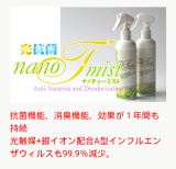 ナノティーミストスプレーは光触媒スプレーです。ウイルス、カビ菌、雑菌、悪臭、有害VOCガス(シックハウスのホルムアルデヒド)などが、光に反応して水と二酸化炭素に分解されて除去されます。一度スプレーすると効果が長期間継続します。成分が純水と酸化チタン、微量の銀イオンだけなので、お子様にも安心安全です。
