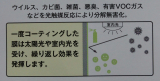 光触媒は太陽や蛍光灯などの光が当たると、その表面で強力な酸化力が生まれ、接触してくる「細菌・雑菌・カビ菌・ウイルス・シックハウスの原因となる化学物質・悪臭・ヤニ汚れ・・・」などの有害物質を除去することができる環境浄化材料です。光触媒パルクコートは人畜無害で安全で、環境への問題もありません。