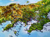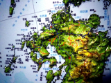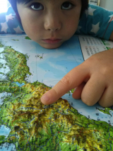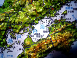 日本とその周辺の地図が、凹凸のついた立体で表現してあります。新幹線の路線や原子力発電所の場所、日本の山脈がどのように隆起しているかを3Dで確認することができます。