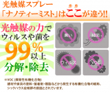 光触媒は太陽や蛍光灯などの光が当たると、その表面で強力な酸化力が生まれ、接触してくる「細菌・雑菌・カビ菌・ウイルス・シックハウスの原因となる化学物質・悪臭・ヤニ汚れ・・・」などの有害物質を除去することができる環境浄化材料です。光触媒パルクコートは人畜無害で安全で、環境への問題もありません。