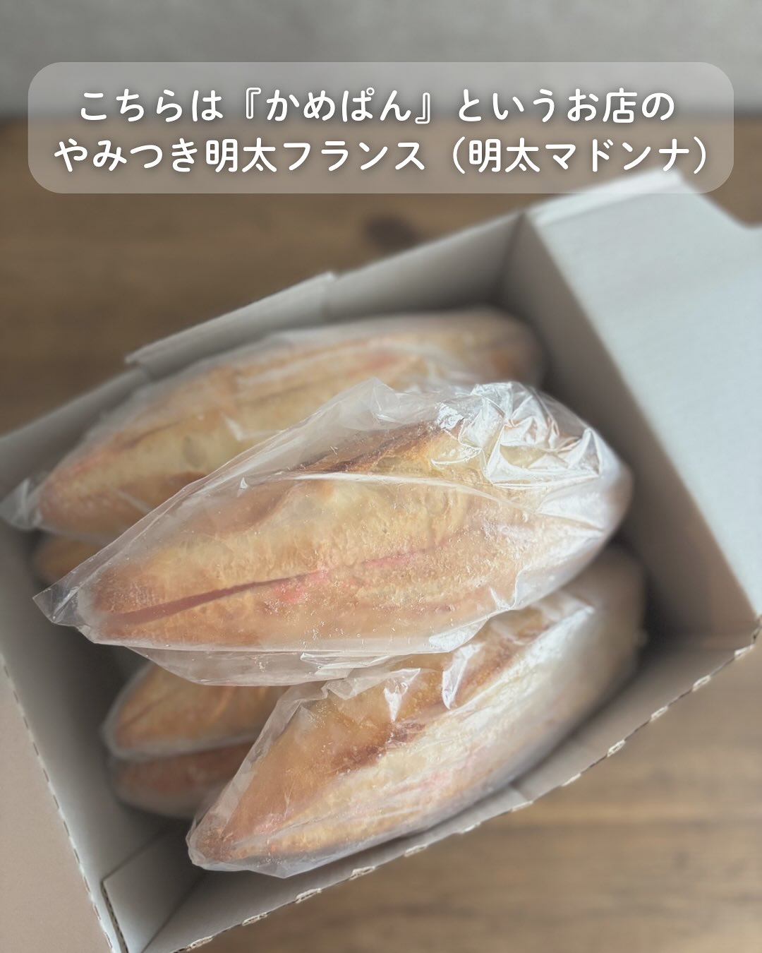 パン&明太マヨ好きにはたまらん過ぎた🤤 想像以上に明太子たっぷりで美味しすぎ!! ハード系のフランスパンやけど 明太フィリングが染み込んでジュワ〜ってなるの最高👍🏻 外パリっ!中じゅわ〜♡♡ こちらは、東京都にある『かめぱん』さんの 明太フランス🥖❤️ 全国の名店パンをお取り寄せできるサイト 『ぱん結び』で購入できるよ🖥 🖱 冷凍で届くから日持ちするのも嬉しい! パンって冷凍するとパサついちゃうイメージあったけど 全然そんなことなくて感動😳 関西住みやけど東京の美味しいパン食べれて幸せです🥰 #PR #ぱん結び #パン #明太フランス #パン通販 #お取り寄せパン #冷凍パン #パン好き #かめぱん #pan_kameya #monipla #panmusubi_fan