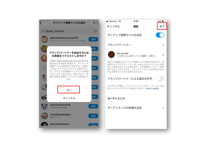 ②「ブランドパートナーによる宣伝を許可」をオンにする