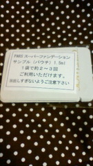 モニプラ株式会社パ-ス様のイベント企画PARSス-パ-ファンデ-ション モニタ-サンプル品3包(約1週間分)に当選して使ってみました私は、普段からファンデ-ションは、リキッド系のものが好きでリキッド系をおもに愛用していますなのでモニプラさんでパ-ス様のこのPARS ス-パ-ファンデ-シ… 2010/08/14