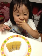 モニターでバウムクーヘンをいただいた とりあえずチョコ味試食なかなかおいしいー(´∀`) そしてスポンジケーキみたいな使い方でミニパフェなど 子どもたちは大喜びで食べてた 切ったプレーン味のバウムクーヘンにアイスのっけていちごソースかけただけ ちょっと甘めだったから牛乳とか砂糖少なめ… 2013/07/04