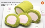 抹茶の生地で桜のクリームを一巻きにした春限定のロールケーキ。